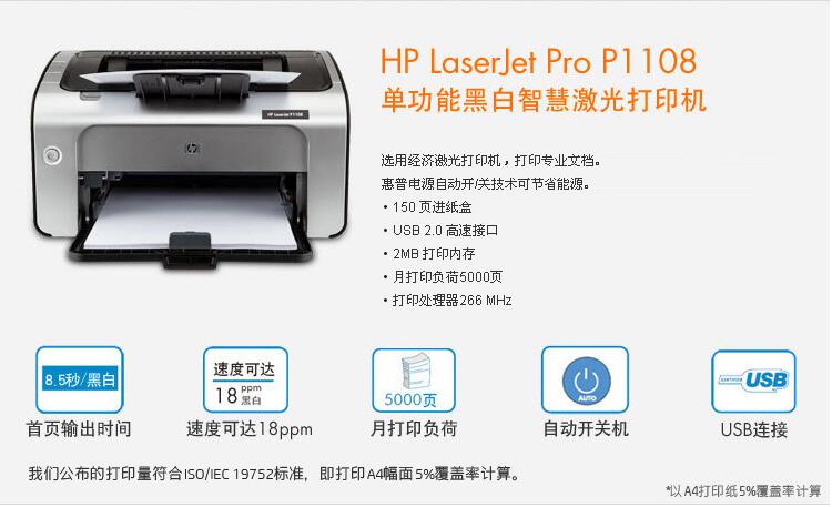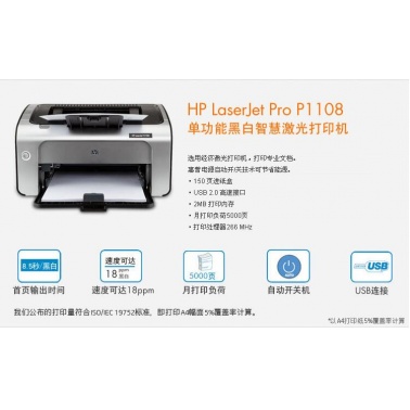 當前位置: 首頁(yè) > 打印設備 > 激光打印機 > 惠普(HP) P1108黑白激光打印機 A4打印 小型商用打印